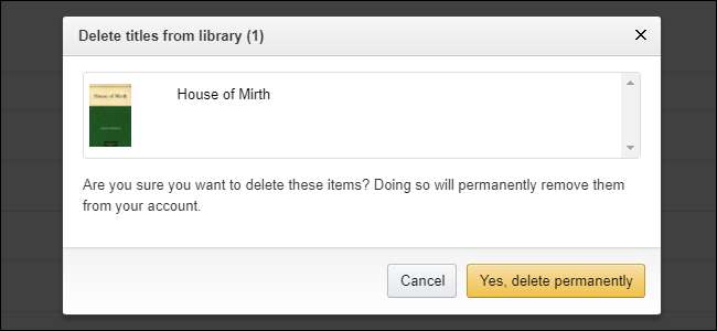 Hvis du er sikker på, at du vil have bogen ud af dit bibliotek, skal du klikke på "Ja, slet permanent." Poof, det er væk for evigt.