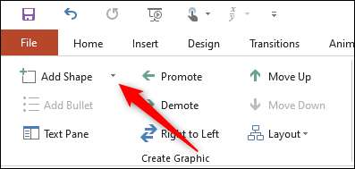 I gruppen "Opret grafisk" skal du klikke på pilen ved siden af indstillingen "Tilføj form".