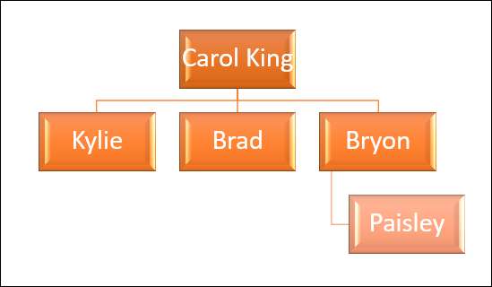 Med diagrammet tilføjet til din præsentation, kan du begynde at indtaste navnene på familiemedlemmerne i hver respektive boks. Gør dette ved at klikke på feltet og skrive deres navn. Teksten ændres sig til automatisk at passe kasserne.
