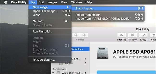 I vinduet Diskværktøj skal du gå til Filer> Nyt billede> Tomt billede.