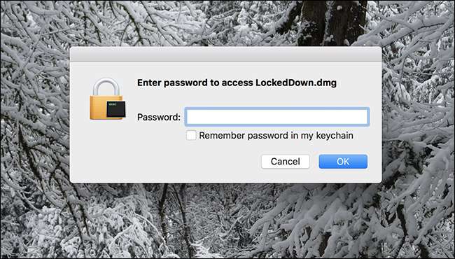 For at montere det krypterede diskbillede i fremtiden skal du finde filen på din harddisk - den vil have .dmg-filtypen - og dobbeltklikke på den. Du bliver bedt om den krypteringsadgangskode, du har angivet, mens du konfigurerer den.
