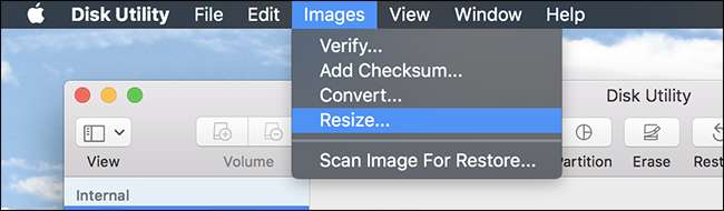 For at gøre dette skal du åbne Diskværktøj og derefter gå til Billeder> Tilpas størrelse.