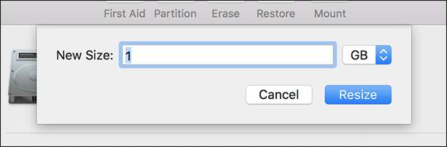 Bemærk, at du ikke kan ændre størrelsen på diskbilledet, hvis det aktuelt er monteret. Hvis knappen Størrelse på billede er grå, skal du blot klikke på Skub ud-knappen i vinduet Diskværktøj og derefter prøve igen.