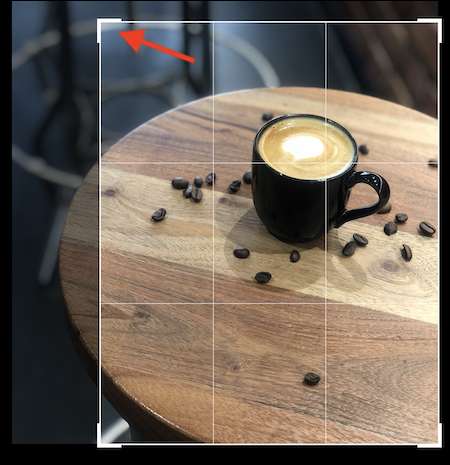Billedet vil blive omgivet af en hvid ramme. Stryg ind fra enhver kant for at beskære billedet. Du kan gøre dette fra alle hjørner. Løft fingeren for at se det beskårne billede.