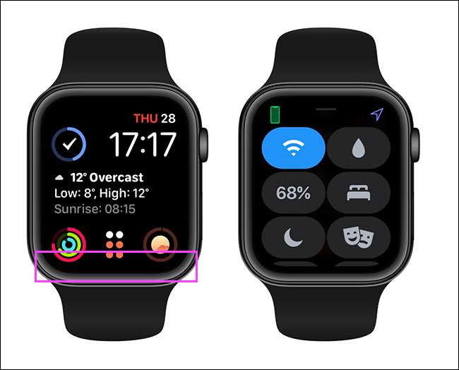 Fra dit ur ansigt, stryge opad fra bunden af skærmen for at åbne kontrolcenteret. Du kan derefter knalde eller anvendelsen af den digitale Crown til rulle.