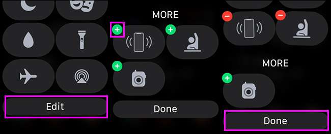 Nogle funktioner er som standard skjult. For at tilføje dem til din kontrolcenter ved at åbne Control Center, skal du rulle ned til bunden, og tryk på ”Rediger”. Under ”Mere”, vil du se de skjulte funktioner. Tryk på den grønne ”Plus” knappen for at tilføje ikonerne, og tryk på ”Udført”.