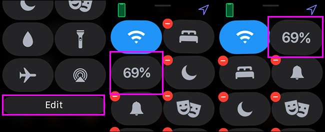 På den anden side, kan du rydde op i din kontrolcenter ved at fjerne alle funktioner, du ikke bruger. Åbn kontrolcenteret, skal du rulle ned til bunden, og tryk på ”Rediger”. Tryk på den røde ”Dash” (minustegn) ikon ved siden af nogen funktioner du ønsker skjult.