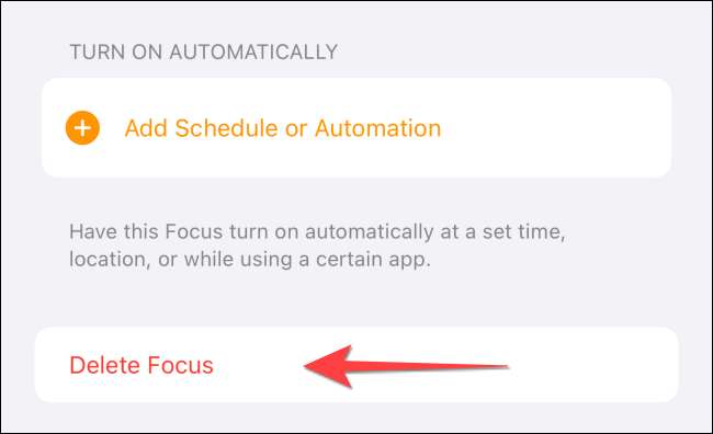 Tryk nu på en fokusfunktion, du planlægger at fjerne. Når det åbnes, rul ned og vælg "Slet fokus".