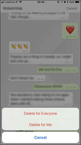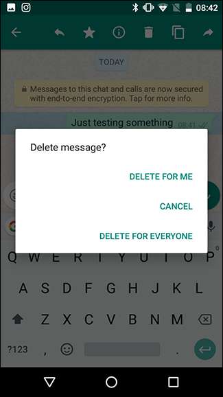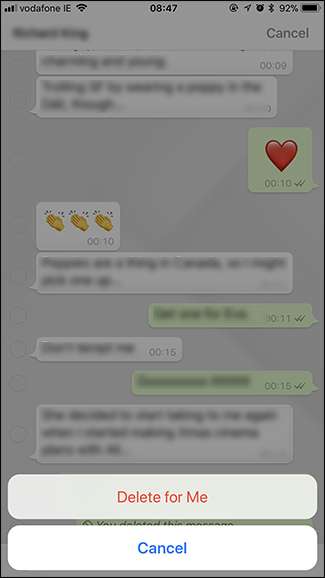 Hvis du venter mere end syv minutter på at slette en besked eller slette en besked, som en anden har sendt til dig, er tingene lidt anderledes. Du kan stadig slette det fra din enhed, men det forbliver hos alle andres. Dette vil beskytte dig, hvis nogen gennemgår dine WhatsApp-meddelelser, men oplysningerne er stadig derude et eller andet sted.