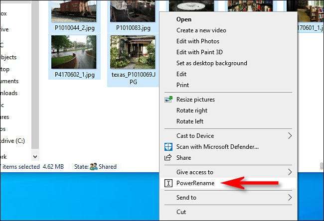 Højreklik derefter på filerne og vælg "PowerRename" fra den menu, der vises.