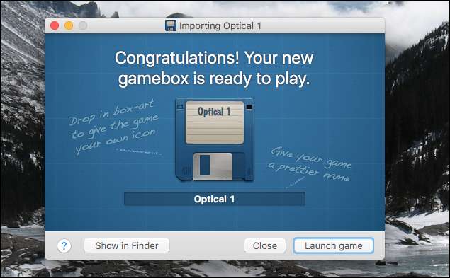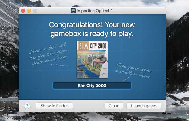 Hvis du har en cd til det spil, du vil spille, skal du indsætte den og trække drevet fra Finder over til applikationen. Du kan også trække over en ISO-fil på en flået cd eller bare en mappe, der indeholder installationsfilerne. I mit tilfælde skal jeg installere Sim City 2000 fra et eksternt cd-drev.