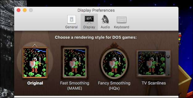 Fire hovedvalg giver dig mulighed for at vælge mellem at udjævne grafik eller tilføje scanlines, som kan efterligne udseendet på en vintage computerskærm. Du finder også midler til at tilføje MT-32 ROM'er for at få musikken til bestemte spil til at fungere.