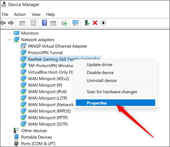 Når du har fundet din Ethernet-controller højreklik på den og vælg Egenskaber.