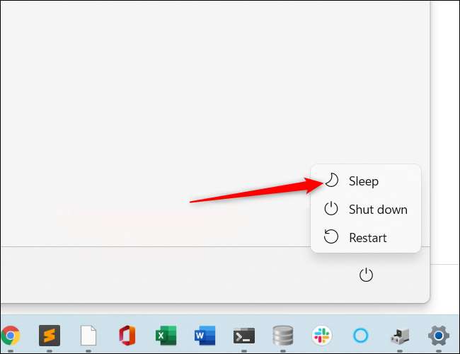 Nu er det tid til at teste vores opsætning. Gå til din wakable pc, klik på Start-menuen, og derefter tænd / sluk-knappen. I stedet for at vælge, "Luk ned" Vælg "Sleep", og vent på din pc til Gå ind i lavt strømtilstand .