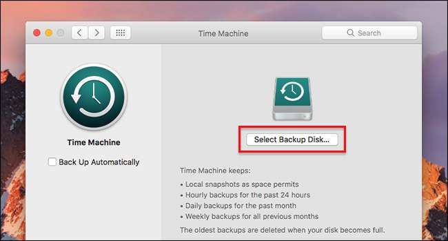 Gå til Systemindstillinger> Time Machine, og klik derefter på "Vælg disk."