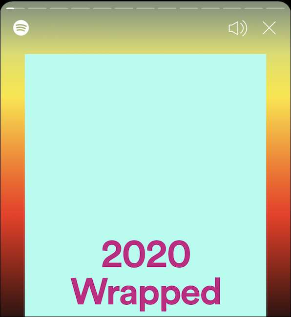 Du vil blive mødt med en Instagram-historielignende grænseflade, der automatisk begynder at afspille musik og en video. Tryk på højre eller venstre side af skærmen for at fremstille fremad eller bagud gennem din spotify indpakket 2020.