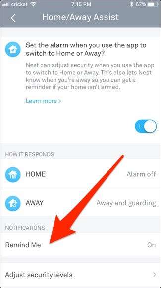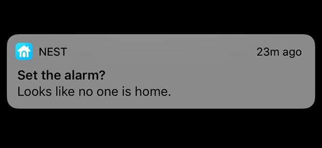 Endelig lader "Påmind mig" din Nest sende dig en underretning, der minder dig om at tilkoble dit Nest Secure-system, når Nest-appen registrerer, at du ikke er hjemme. Dette er meddelelsen, der er afbildet øverst i artiklen, kun denne gang fungerer disse meddelelser korrekt, da vi har løst problemet med Home / Away Assist.