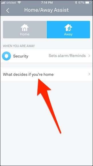 Tryk derefter på indstillingen "Hvad afgør, om du er hjemme".