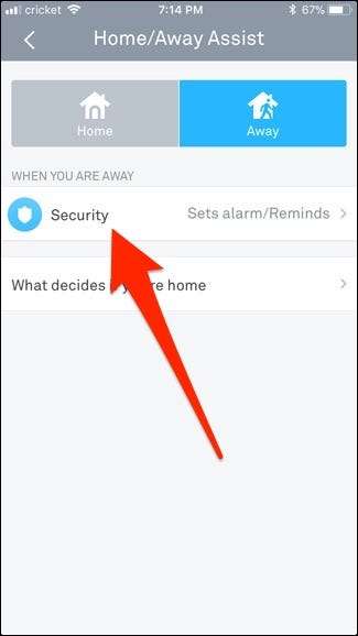 Når du har indstillet alt dette, skal du gå tilbage og trykke på indstillingen "Sikkerhed" under afsnittet "Når du er væk" på hovedsiden "Hjem / udehjælp".