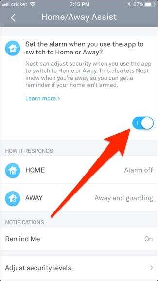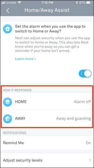 Med et Nest-tag er det virkelig nemt at manuelt tilkoble og deaktivere dit Nest Secure-system, så det er ikke en dårlig idé at deaktivere Home / Away Assist helt. Men hvis du er en stor fan af komplet automatisering, er det de indstillinger, du vil tilpasse og rod med.
