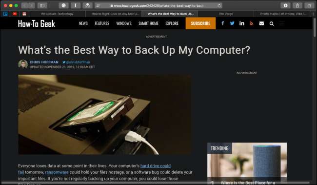 Safari-versionen har en stor fordel: Den synkroniseres med den globale mørke tilstand i macOS. Så når du aktiverer den mørke tilstand i macOS (let gjort ved hjælp af Nat ugle værktøj), skifter alle websteder straks også til et mørkt tema.