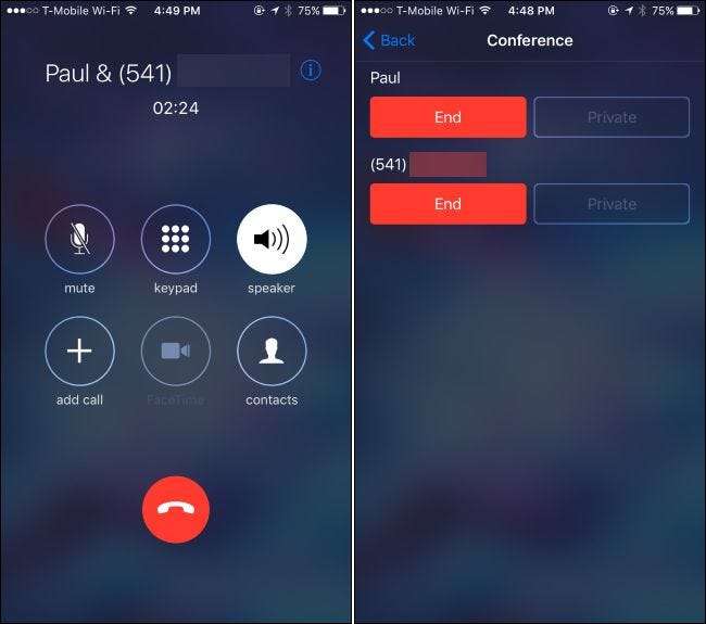 Tryk på knappen "Flet opkald", og du har nu et konferenceopkald, der involverer dig og de to personer, du ringede til.