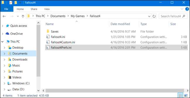 Naviger først til Fallout 4-mappen i din dokumentmappe. Du finder det under