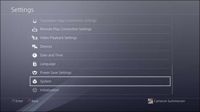Derfra, rul ned til bunden og spring ind i systemmenuen. Det er den næstsidste mulighed.