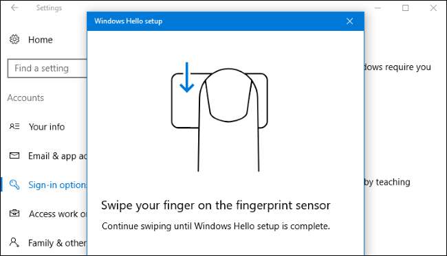 Windows guider dig gennem opsætning af fingeraftryk eller ansigtsgenkendelse - for eksempel ved at stryge hen over fingeraftrykslæseren, indtil den genkender dit fulde fingeraftryk.