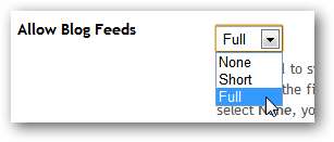 Gå til afsnittet Site Feed, og sørg for, at Blog Feeds er aktiveret - vi foretrækker fulde feeds, men du kan vælge Short, hvis du foretrækker det.