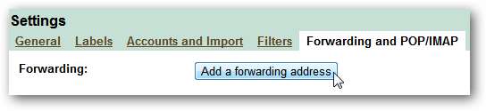 I Gmail skal du klikke på linket Indstillinger øverst til højre på siden. Gå til Videresendelse og POP / IMAP fanen, og klik derefter på Tilføj en videresendelsesadresse .
