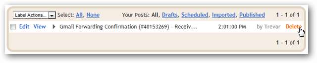 For sikkerheds skyld bør du slette dette "indlæg". Gå til afsnittet Indlæg i din blogs konfiguration, klik på Rediger indlæg og slet e-mail-bekræftelsen.