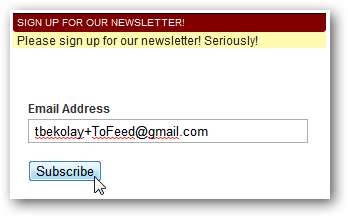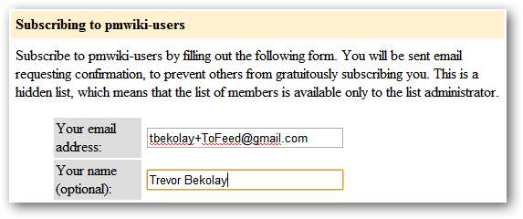 Når du har gennemgået opsætningstrinnene, kan du bruge din underadresse til at modtage enhver e-mail, som du hellere vil gennemgå gennem din RSS-læser. Du vil sandsynligvis kun gøre dette for e-mail, der allerede er tilgængelig for offentligheden, som for eksempel mailinglister ...