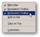 Kontroller indstillingen "Bogmærkeværktøjslinje".