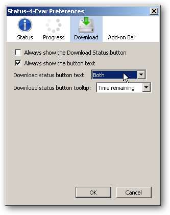 I afsnittet Download skal du vælge begge dele i "Download statusknaptekst".