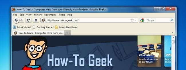 Odds er, at du sandsynligvis har ændret standardgrænsefladen en smule, men vi skal bruge "ud af boksen" Firefox 3-grænsefladen som vores model.