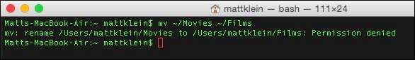 Den anden kommando "ln -s" betyder, at vi opretter et symbolsk link (alias) til vores gamle Dokumentplacering fra vores nye placering. Når du trykker på "RETURN", bliver du bedt om din kontoadgangskode, før du kan udføre en kommando som superbruger.