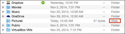 Lad os prøve endnu et eksempel. Vi er ret gode til at beholde alle vores fotos på Dropbox, men OS X har sin egen Pictures-mappe. Lad os gennemgå de trin, vi lige har udført, og flytte mappen Billeder.