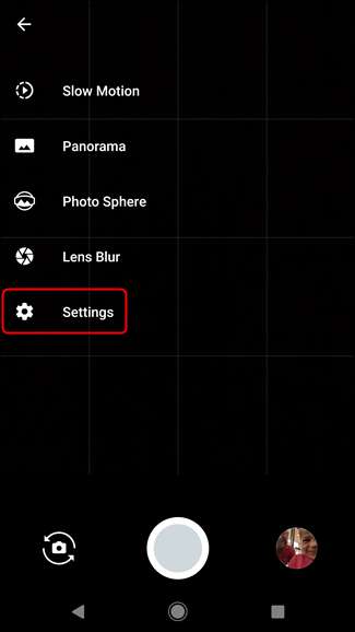 Start først kameraet, og tryk derefter på de tre linjer i øverste venstre hjørne for at åbne menuen.