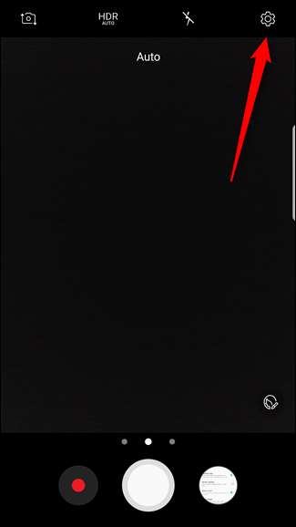Først skal kameraet køre, og derefter trykke på tandhjulsikonet i øverste hjørne ... den nøjagtige placering ændres i henhold til retning.