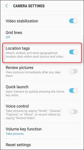 Når det er sagt, fjerner mange onlinetjenester disse data, når du uploader et foto. For eksempel fjerner Facebook og Imgur begge disse data fra billeder af hensyn til privatlivets fred - men hvis du vil være på den sikre side, kan du forhindre, at Android overhovedet gemmer dem overhovedet.