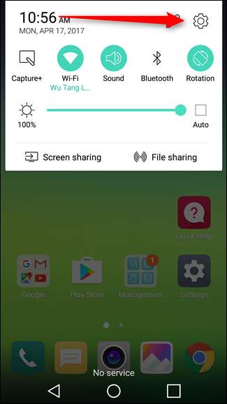 Træk først beskedskærmen ned, og tryk på tandhjulsikonet.