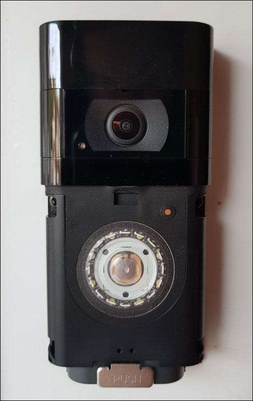 Mens du holder din ring for at holde den fra at falde, skal du trække forsiden fremad og væk fra enheden for at frigøre den fra monteringsbeslaget.