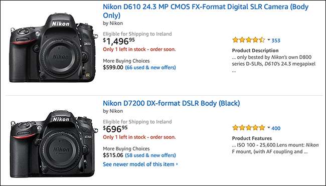 For større genstande som kameraer og linser er problemerne lidt mere subtile. Kameraer er dyre og teknisk vanskelige at fremstille, så de er meget sværere at klone. I stedet, svindlere vil købe et billigere kamera og ændre badges, så det ligner den dyrere model . For eksempel ligner Nikon D7100 den betydeligt dyrere D610, at svindlere billigt kan skifte et karosseripanel og piske 7100 til for en pæn fortjeneste.