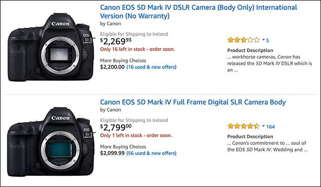 Den bedste ting at gøre er at købe fra en lokal kamerabutik. Mange af dem har onlinebutikker, og de sendes med glæde til dig. Priserne vil sandsynligvis ikke være så lave som Amazons, men du får ro i sindet ved at vide, at du ikke bliver flået af. Især for varer med store billetter kan personalet i kamerabutikken have en vis bredde til at tilbyde rabatter, give dig gratis ting og ellers udgøre kløften mellem deres listepris og Amazonas. De største kameraproducenter har også hyppige tilbagebetalingstilbud, som de kan rådgive dig om.