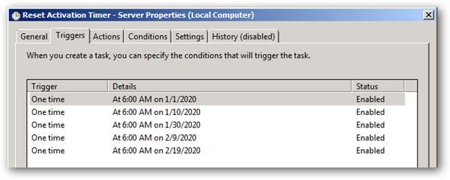 Vores første opgave, "Nulstil aktiveringstimer", udnytter alle 5 af hver af de 10 dages nåde. Hver forekomst af denne opgave er et engangsspecifikt opkald. Det første opkald skal indstilles til 10 dage fra den første systemstart, hvor hvert efterfølgende opkald er indstillet 10 dage efter det foregående.