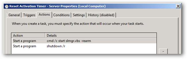 Den egentlige kommando er et kald til "slmgr.vbs" scriptet med -rearm parameteren efterfulgt af en systemgenstart.