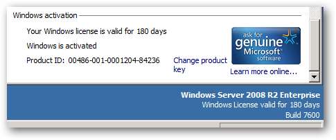 Når Windows Server 2008 R2-evalueringen (eller prøveversionen) er aktiveret, varer den i 180 dage, hvorefter du enten skal indtaste en gyldig licensnøgle, ellers lukker serveren sig selv efter en times brug.