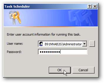 Når du anvender indstillingerne for opgaven, bliver du bedt om administratoradgangskoden.