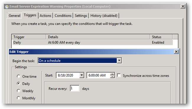 Igen vil denne handling som standard køre dagligt fra 10 dage før serveren udløber.